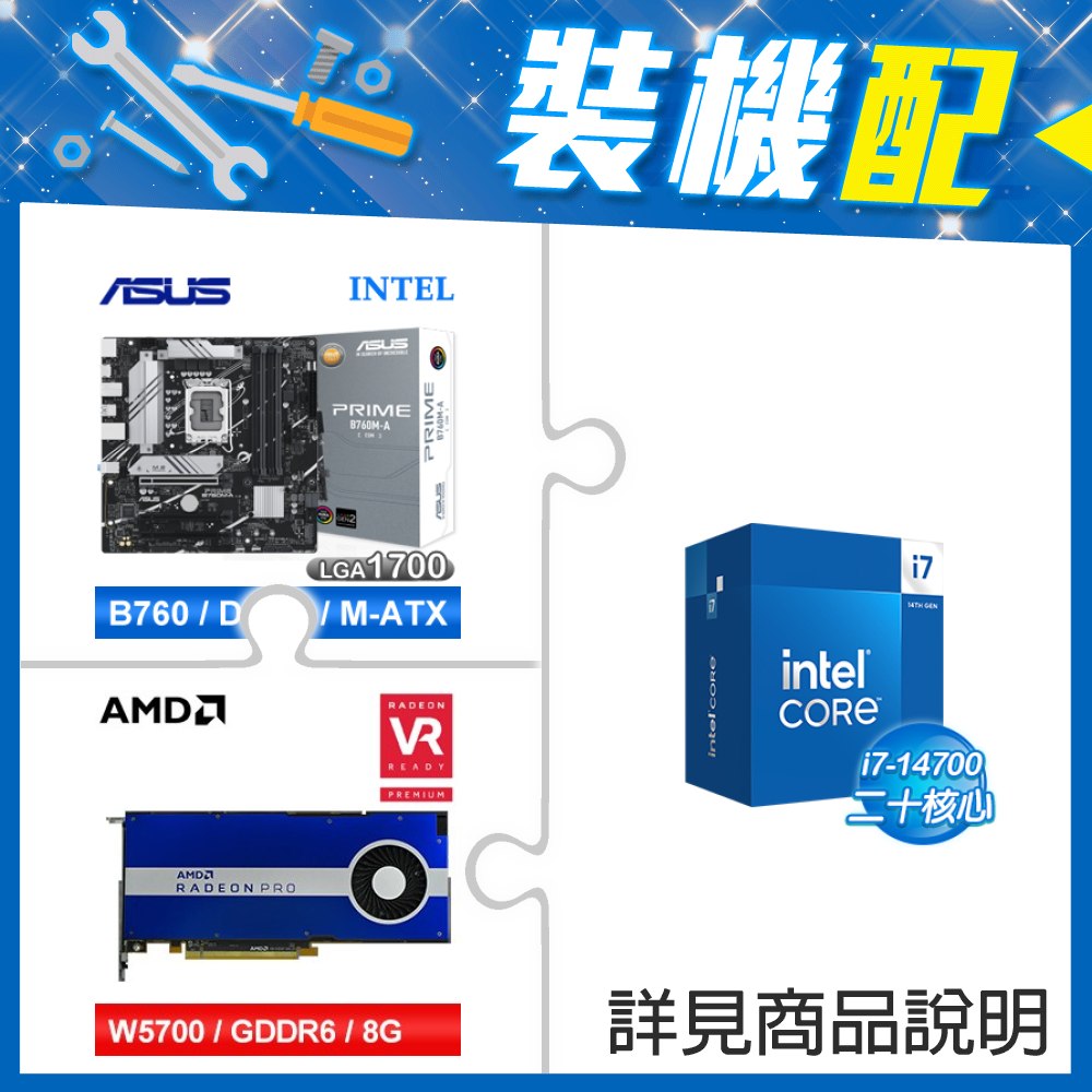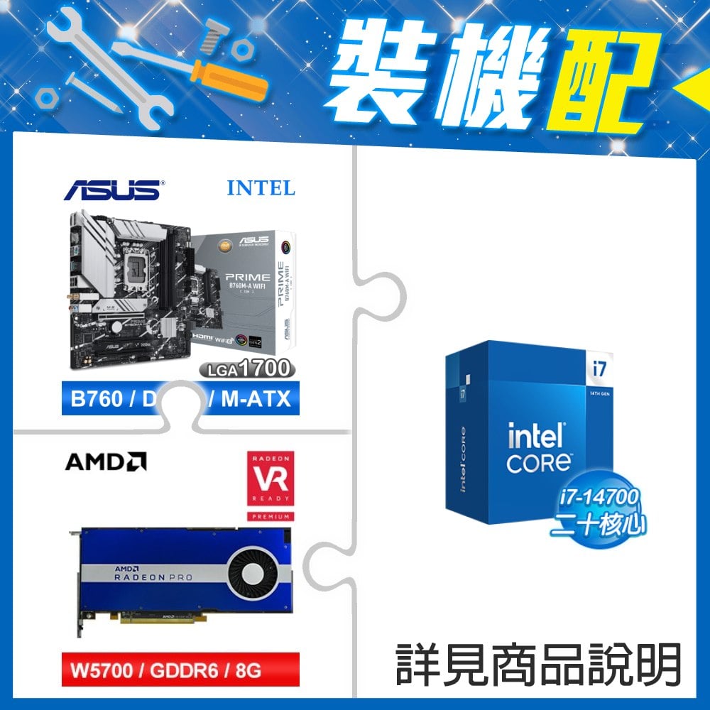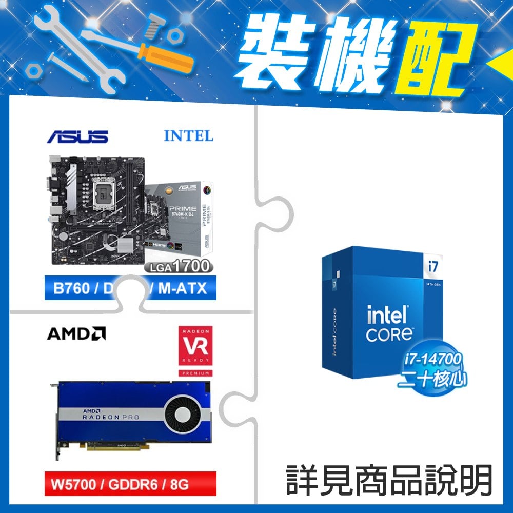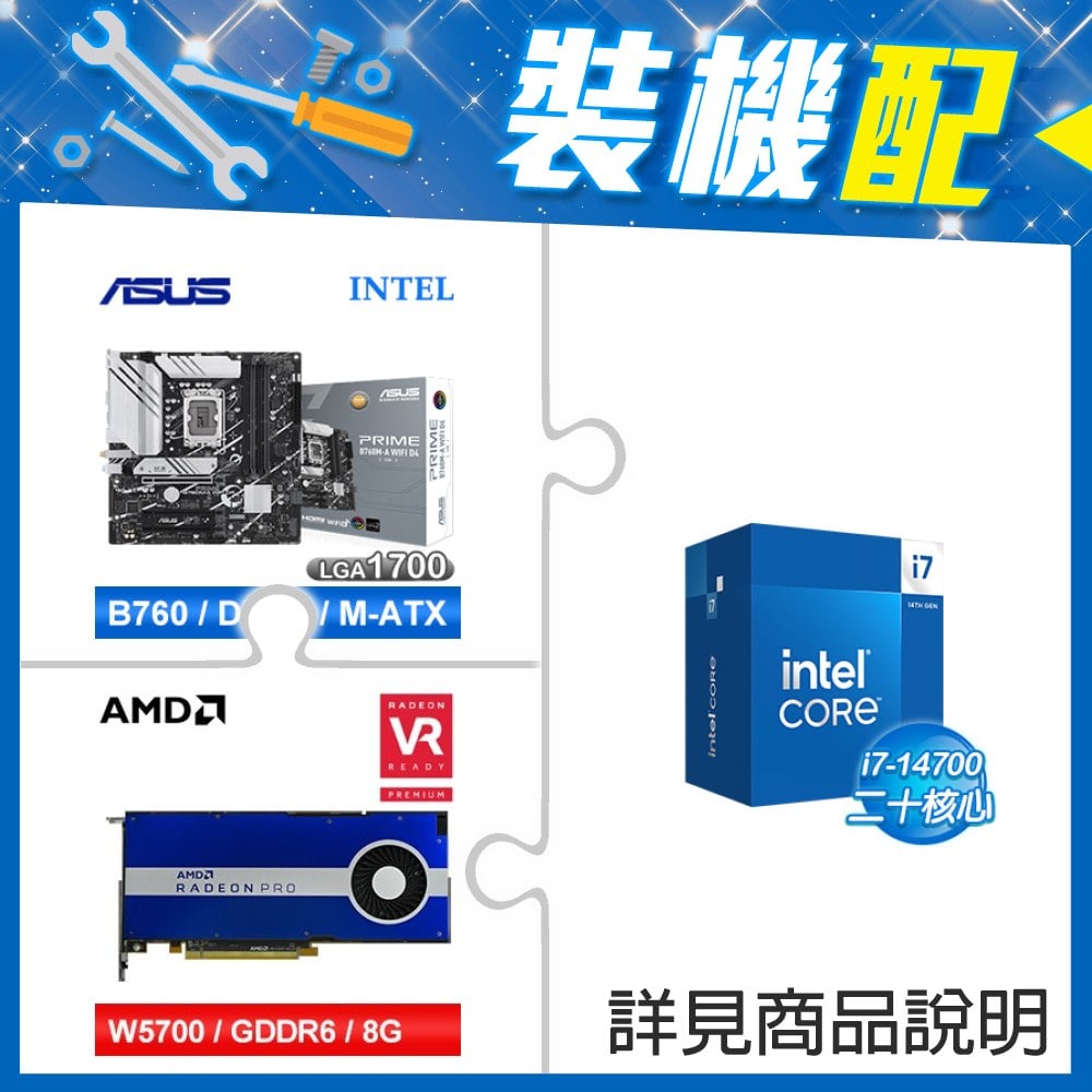 ☆裝機配★ i7-14700+華碩 PRIME B760M-A WIFI D4-CSM 主機板+AMD RadeonPro W5700 8G 256bit專業繪圖卡