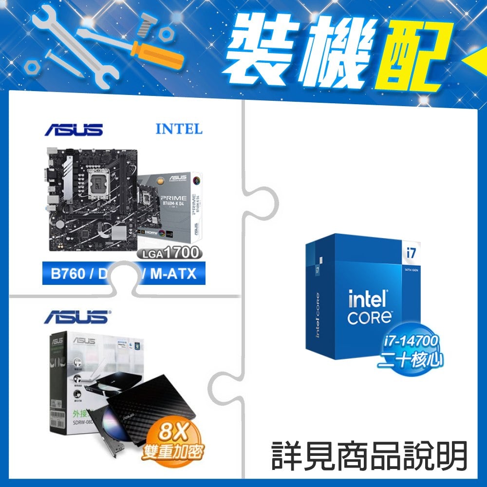 ☆裝機配★ i7-14700+華碩 PRIME B760M-K D4-CSM 主機板+華碩 SDRW-08D2S-U 外接式燒錄機《黑》