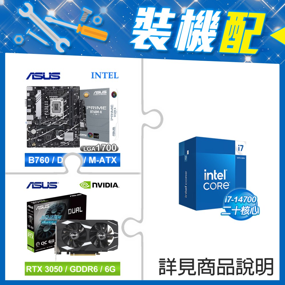 ☆裝機配★ i7-14700+華碩 PRIME B760M-A WIFI D4-CSM 主機板+華碩 DUAL-RTX3050-O6G 顯示卡