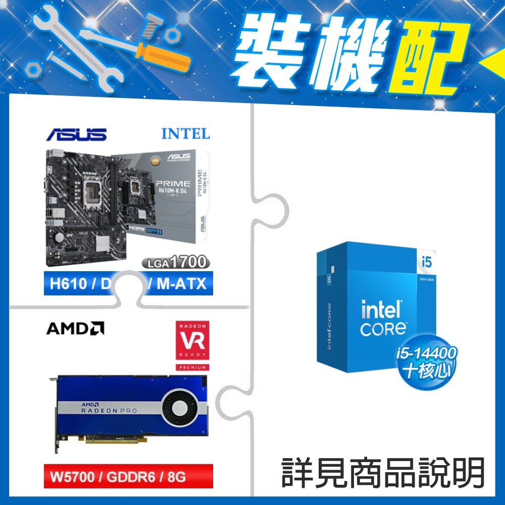 ☆裝機配★ i5-14400+華碩 PRIME H610M-K D4-CSM M-ATX主機板+AMD RadeonPro W5700 8G 256bit專業繪圖卡