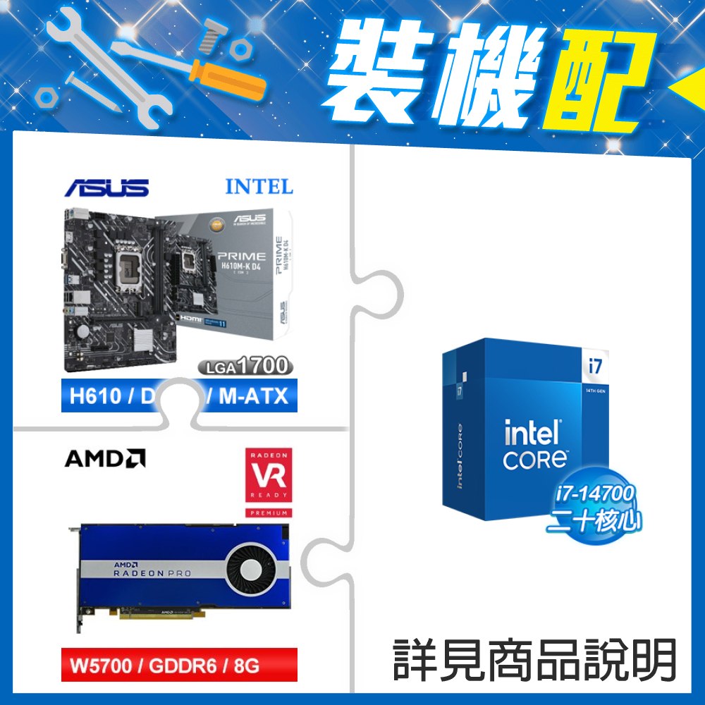 ☆裝機配★ i7-14700+華碩 PRIME H610M-K D4-CSM M-ATX主機板+AMD RadeonPro W5700 8G 256bit專業繪圖卡