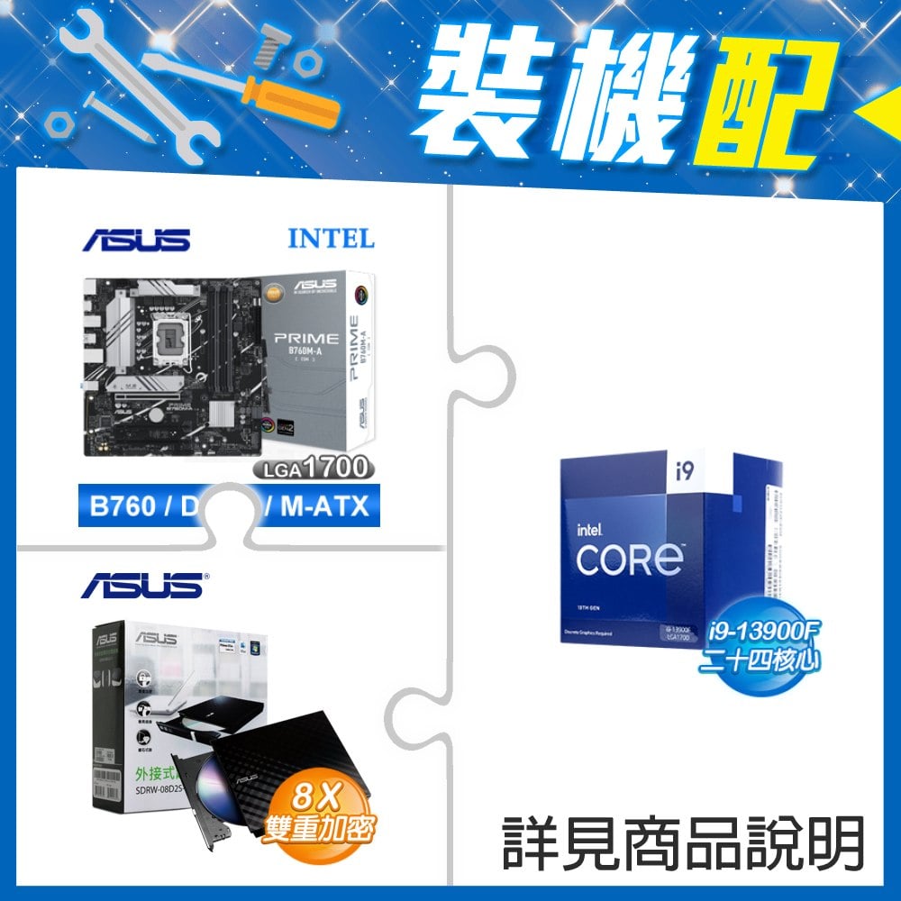 ☆裝機配★ i9-13900F《無內顯》+華碩 PRIME B760M-A WIFI D4-CSM 主機板+華碩 SDRW-08D2S-U 外接式燒錄機《黑》