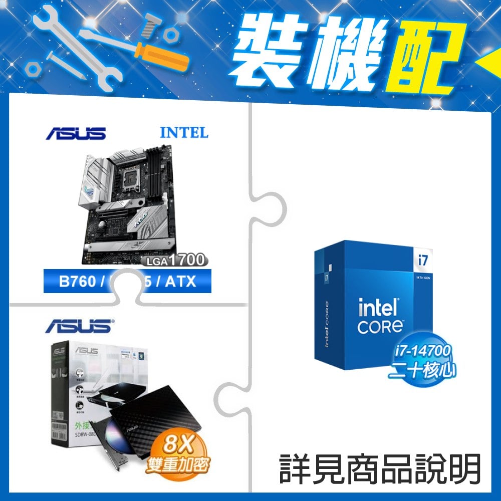☆裝機配★ i7-14700+華碩 ROG STRIX B760-A GAMING WIFI D5 ATX主機板+華碩 SDRW-08D2S-U 外接式燒錄機《黑》