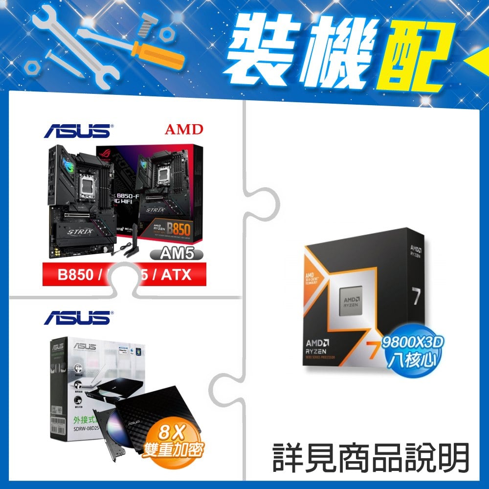 ☆裝機配★ AMD R7 9800X3D+華碩 ROG STRIX B850-F GAMING WIFI ATX主機板+華碩 SDRW-08D2S-U 外接式燒錄機《黑》