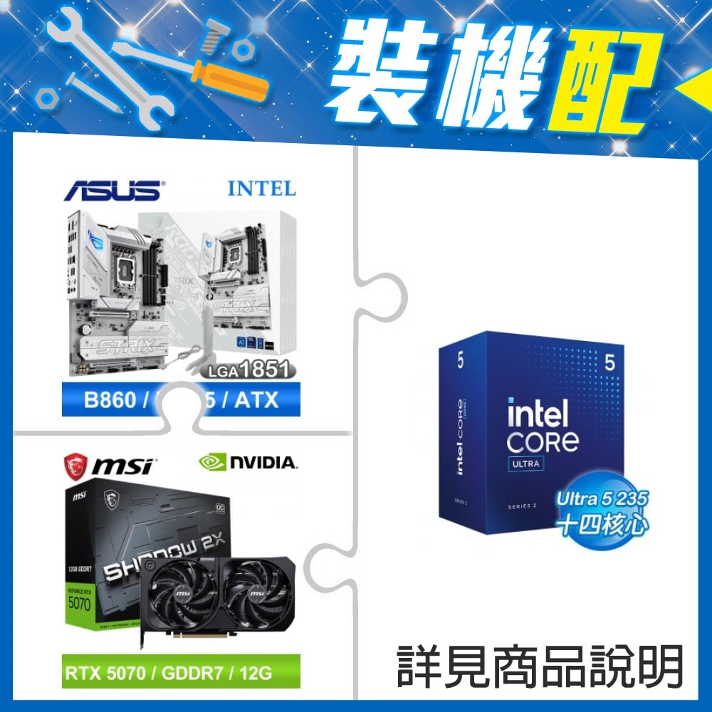 ☆裝機配★ Core U5 235+華碩 ROG STRIX B860-A GAMING WIFI 白色板 D5 ATX主機板+微星 RTX 5070 12G SHADOW 2X OC 顯示卡