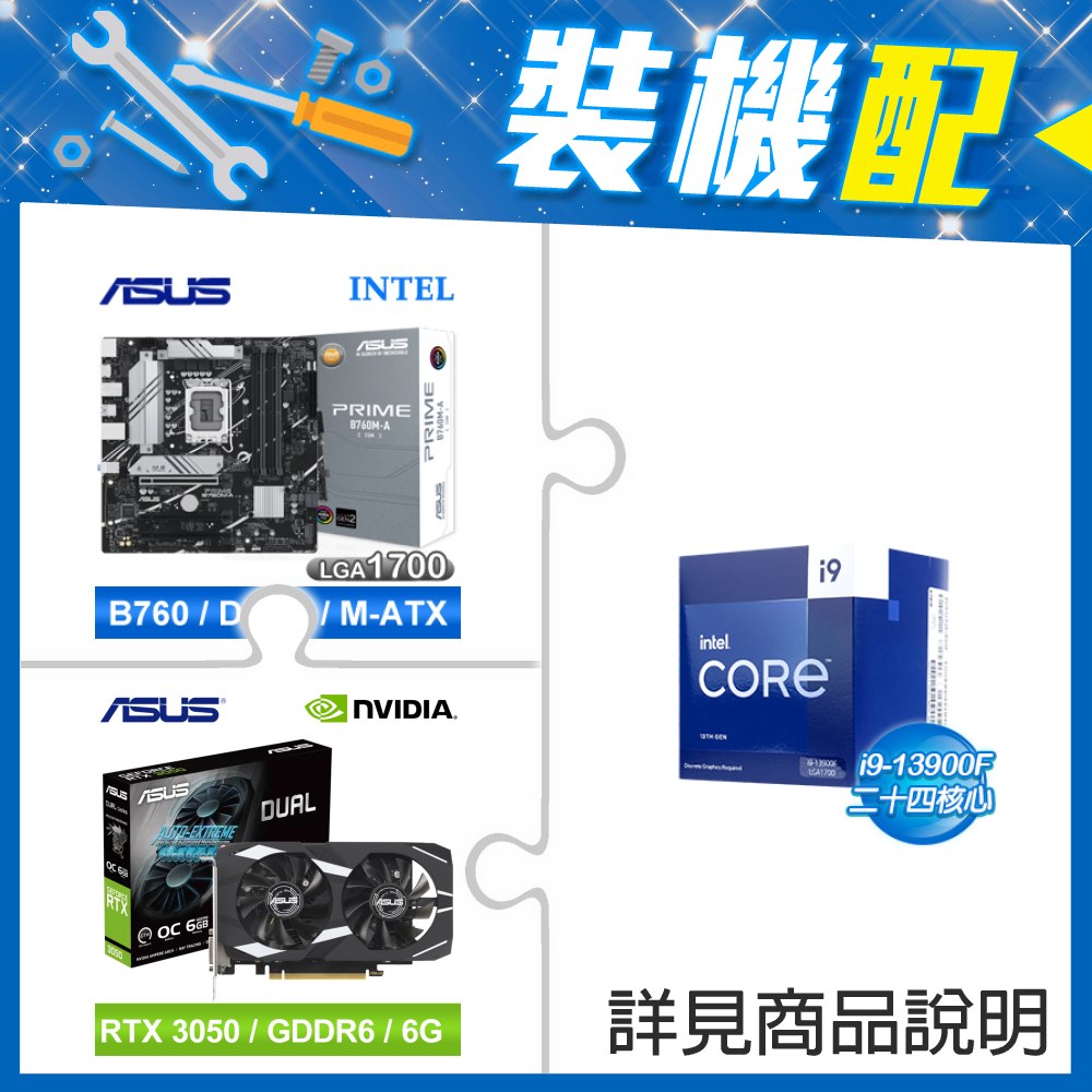 ☆裝機配★ i9-13900F《無內顯》+華碩 PRIME B760M-A-CSM D5 M-ATX主機板+華碩 DUAL-RTX3050-O6G 顯示卡