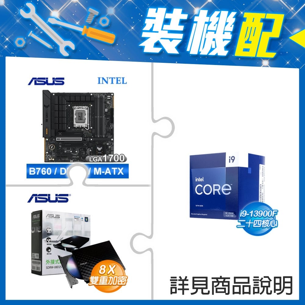 ☆裝機配★ i9-13900F《無內顯》+華碩 TUF GAMING B760M-PLUS WIFI II D5 MATX主機板+華碩 SDRW-08D2S-U 外接式燒錄機《黑》
