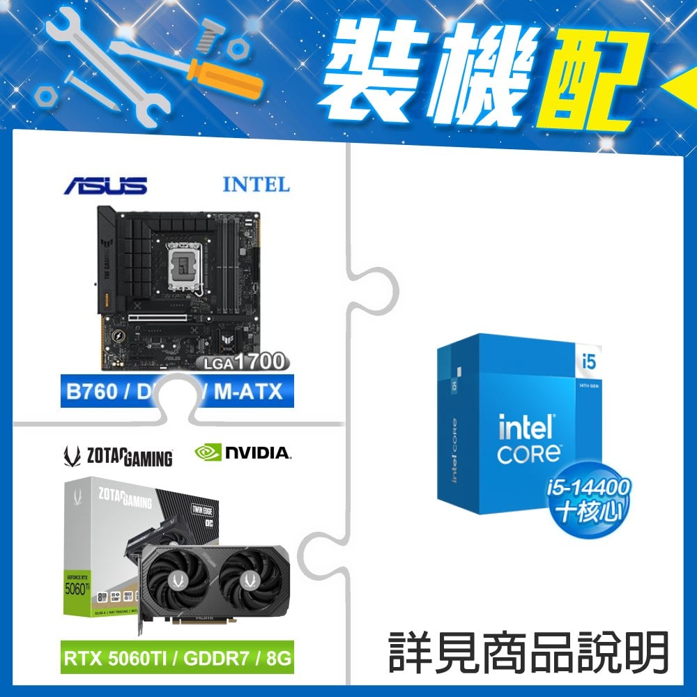 ☆裝機配★ i5-14400+華碩 TUF GAMING B760M-PLUS WIFI II D5 MATX主機板+索泰 RTX 5060 TI 8GB Twin Edge OC 顯示卡