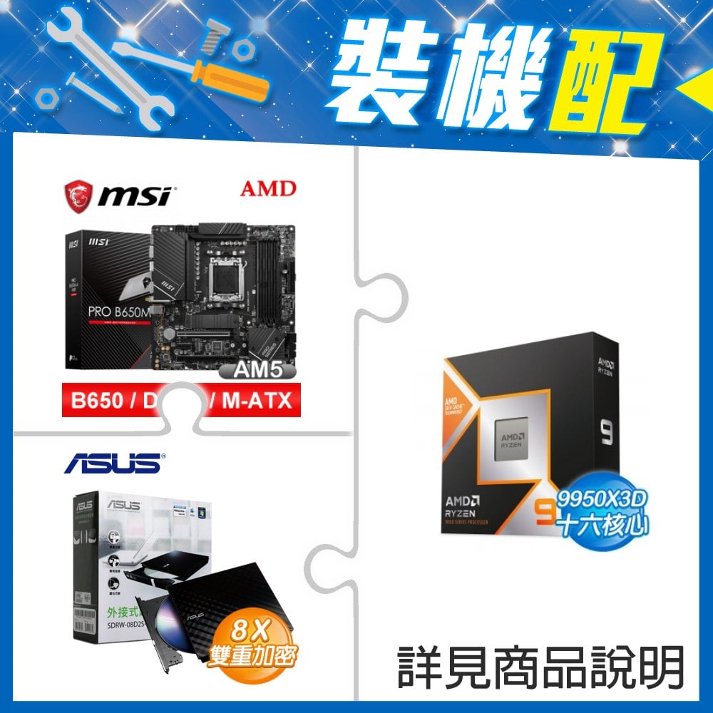 ☆裝機配★ AMD R9 9950X3D+微星 PRO B650M-A WIFI D5 M-ATX主機板+華碩 SDRW-08D2S-U 外接式燒錄機《黑》
