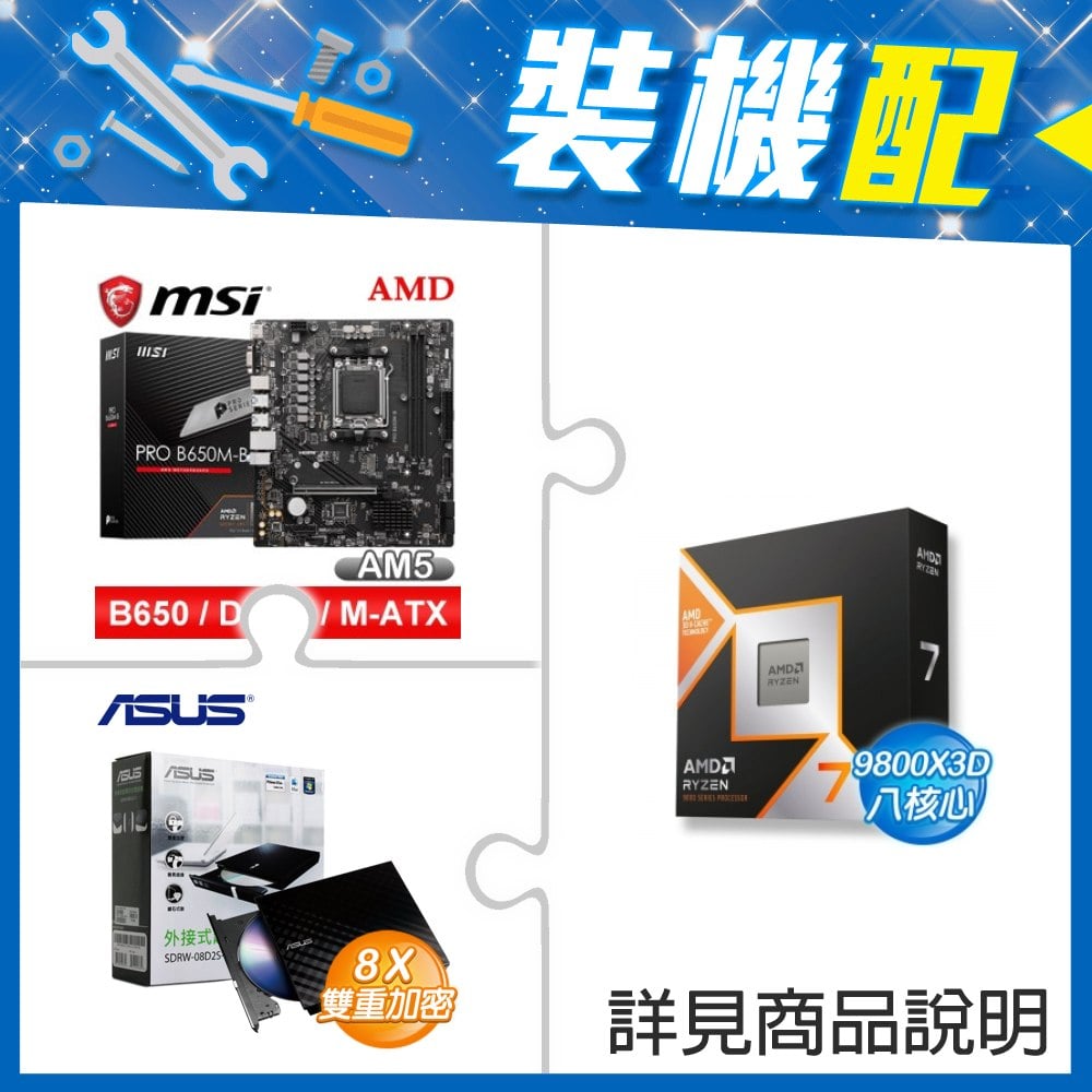 ☆裝機配★ AMD R7 9800X3D+微星 PRO B650M-B M-ATX主機板+華碩 SDRW-08D2S-U 外接式燒錄機《黑》