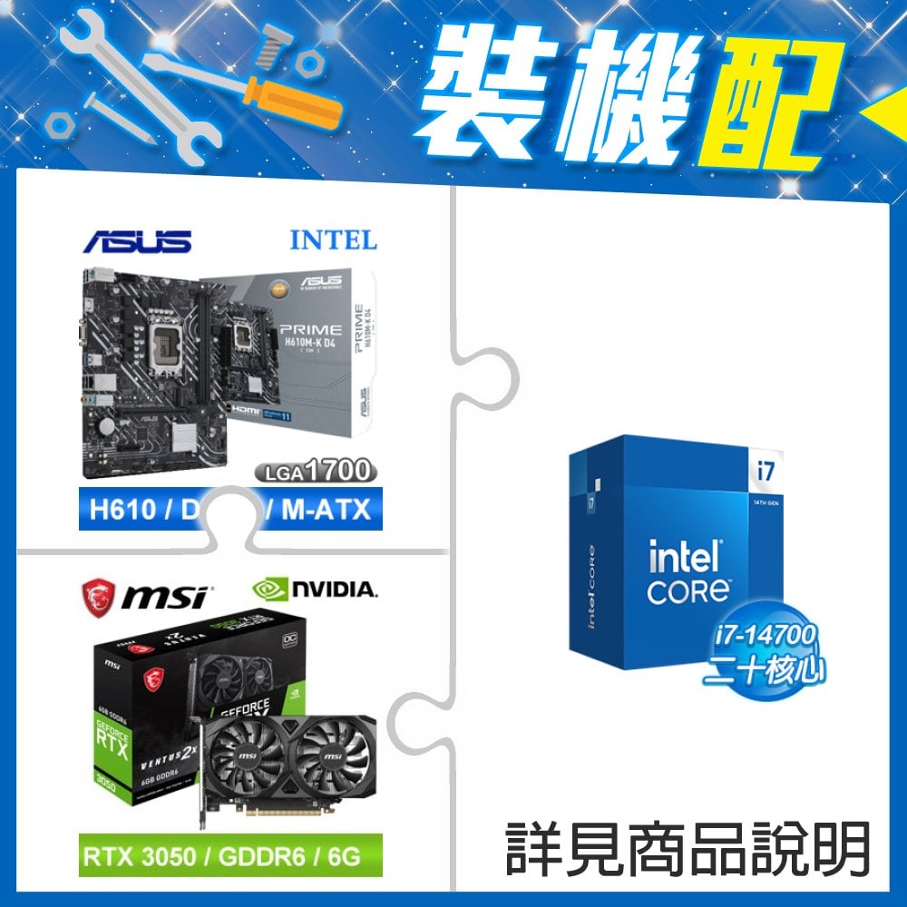 ☆裝機配★ i7-14700+華碩 PRIME H610M-K D4-CSM M-ATX主機板+微星 RTX 3050 VENTUS 2X 6G OC 顯示卡