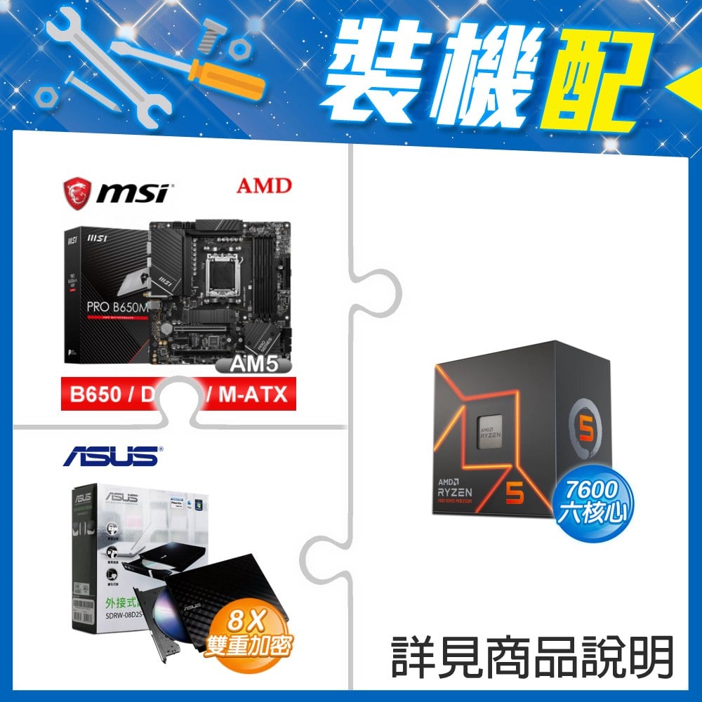 ☆裝機配★ AMD R5 7600+微星 PRO B650M-A WIFI D5 M-ATX主機板+華碩 SDRW-08D2S-U 外接式燒錄機《黑》