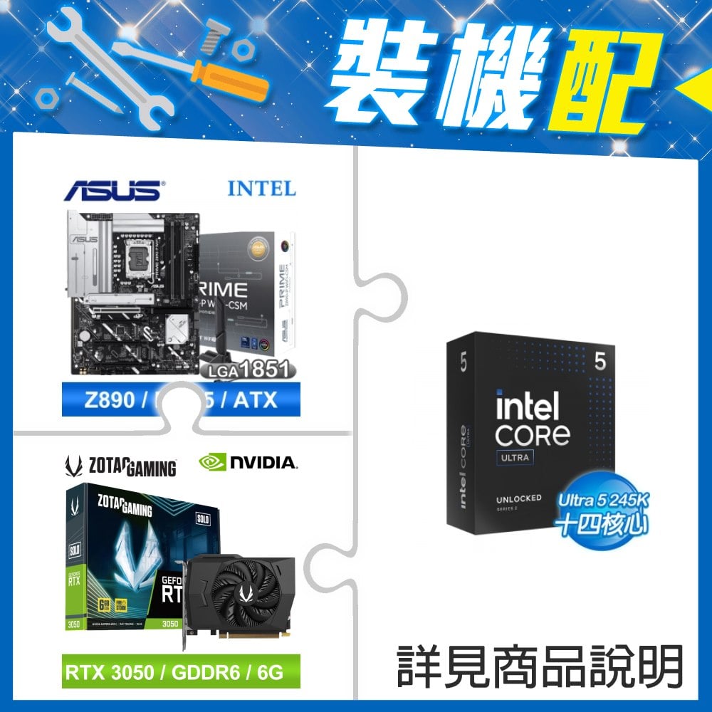 ☆裝機配★ Core U5 245K+華碩 PRIME Z890-P WIFI-CSM D5 ATX主機板+ZOTAC RTX3050 6G GDDR6 Solo 顯示卡