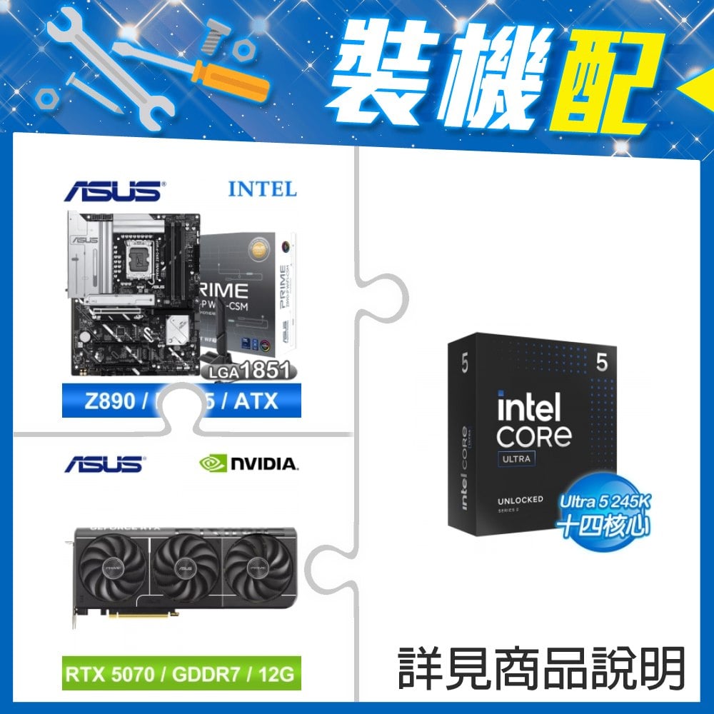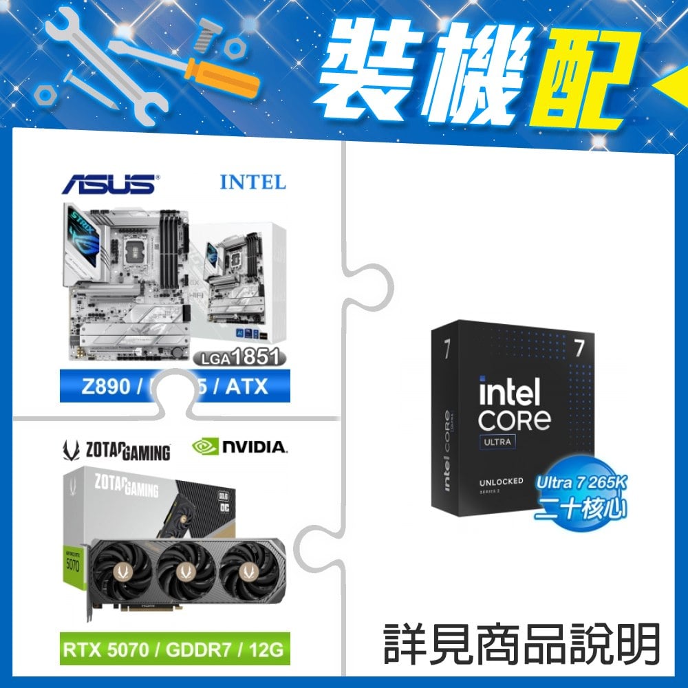 ☆裝機配★ Core U7 265K+華碩 ROG STRIX Z890-A GAMING WIFI D5 ATX主機板+索泰 RTX 5070 SOLID OC 12G 顯示卡