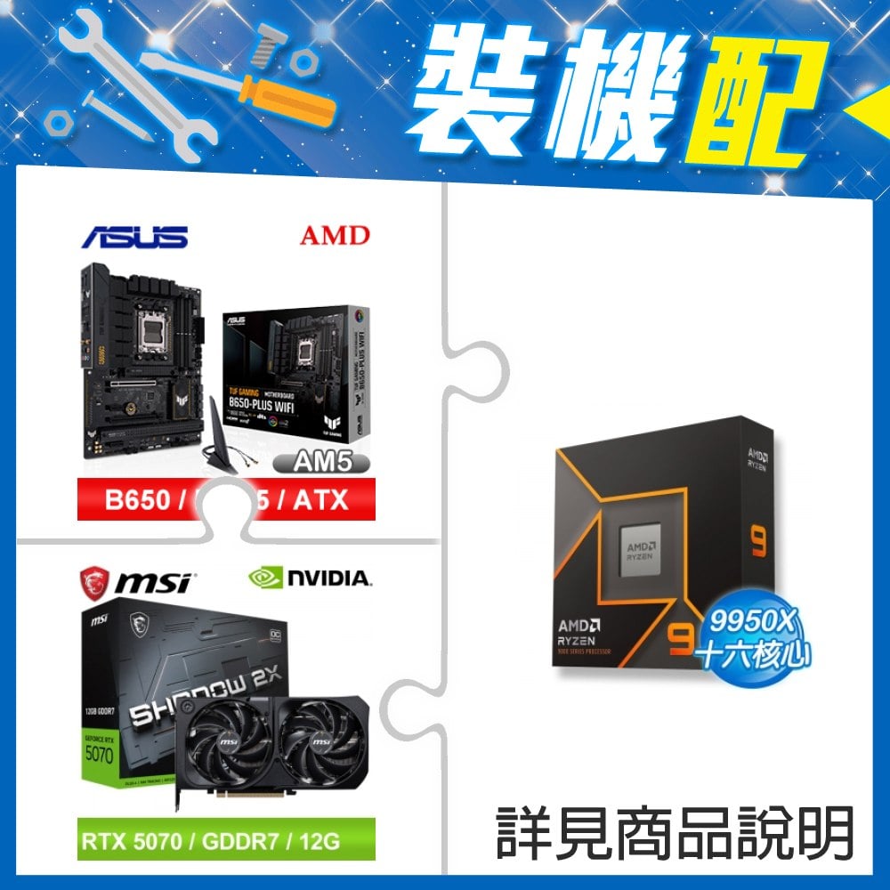 ☆裝機配★ AMD R9 9950X+華碩 TUF GAMING B650-PLUS WIFI ATX主機板+微星 RTX 5070 12G SHADOW 2X OC 顯示卡