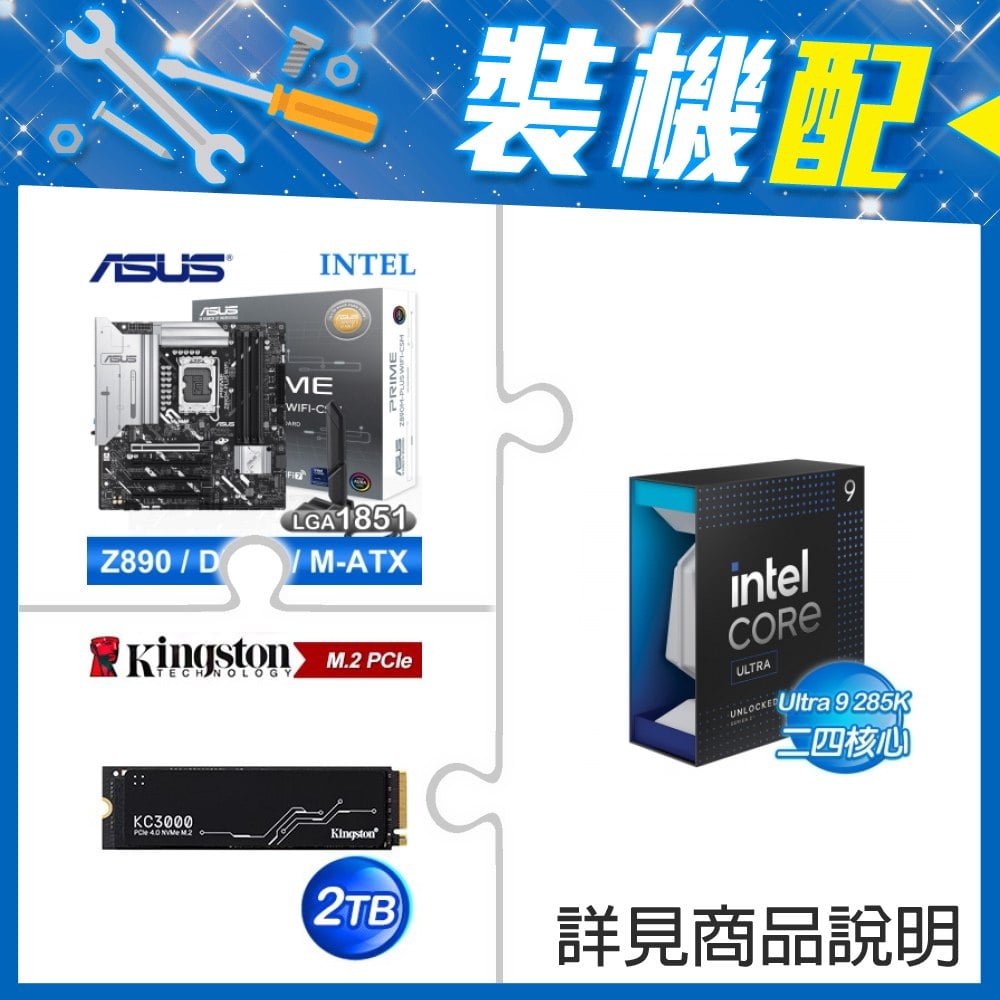 ☆裝機配★ Core U9 285K+華碩 ROG STRIX Z890-A GAMING WIFI D5 ATX主機板+金士頓 KC3000 2TB PCIe 4.0 NVMe M.2 SSD