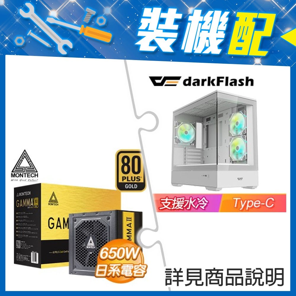☆裝機配★ darkFlash【MOTI 鏡之島】全景玻璃 M-ATX機殼《白》+MONTECH GAMMA II 650W 金牌