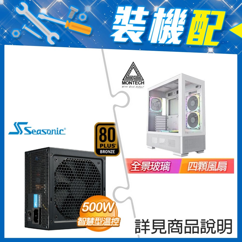 ☆裝機配★ MONTECH【XR】全景玻璃透側 ATX機殼《白》+海韻 S12III-500 500W 銅牌