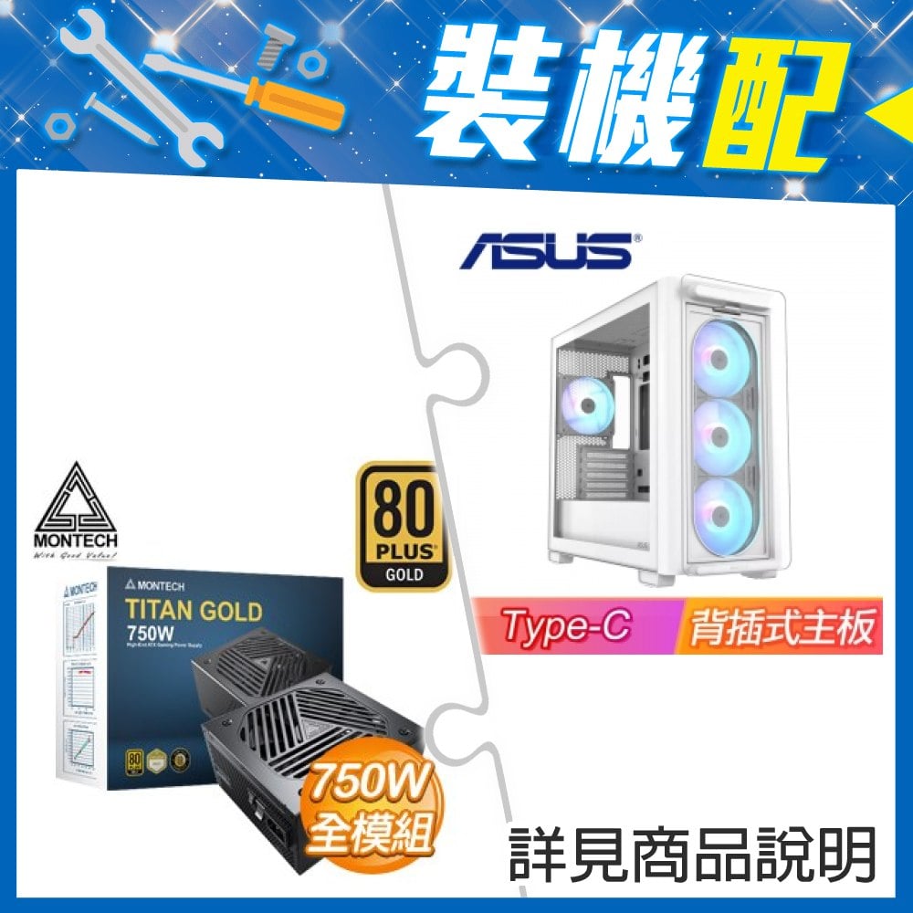 ☆裝機配★ 華碩【A23 PLUS】玻璃透側 M-ATX機殼 (支援背插式主板)《白》+MONTECH TITAN GOLD 750W 金牌 全模組 ATX3.0(PCIe 5.0)