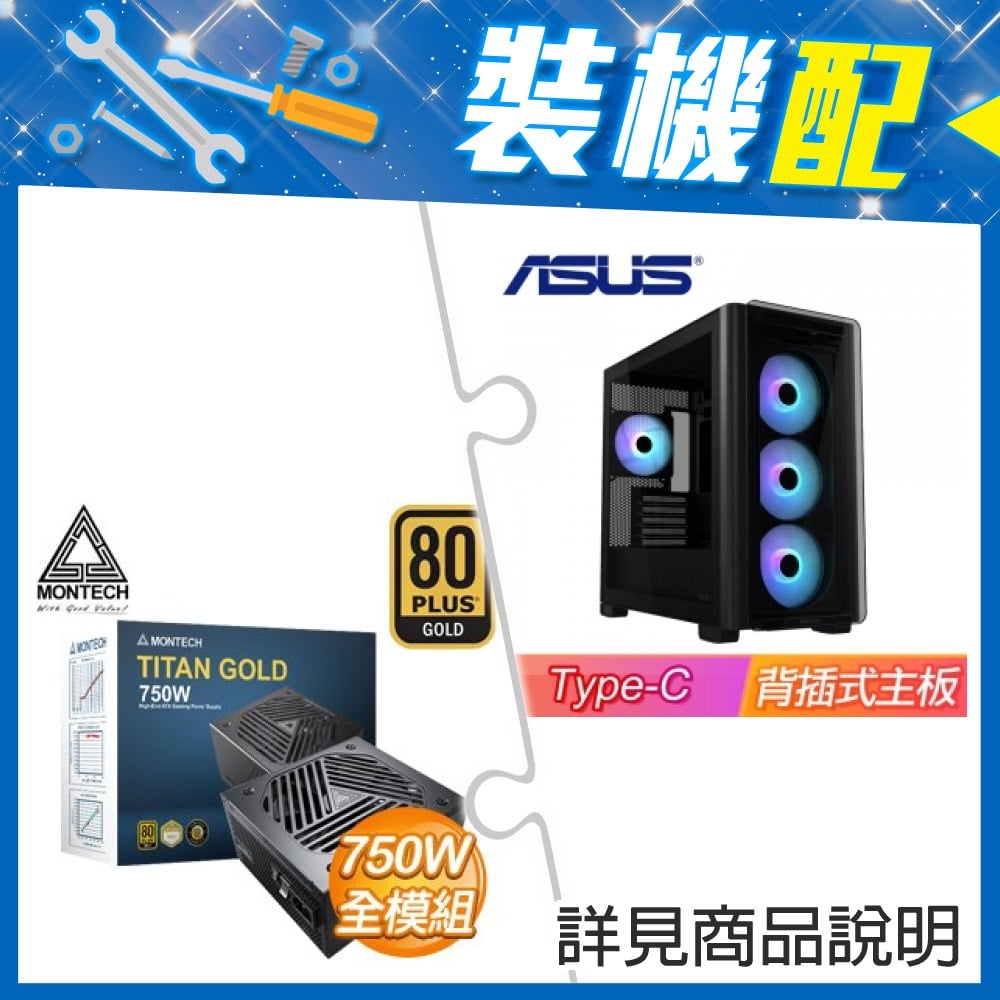 ☆裝機配★ 華碩【A23 PLUS】玻璃透側 M-ATX機殼 (支援背插式主板)《黑》+MONTECH TITAN GOLD 750W 金牌 全模組 ATX3.0(PCIe 5.0)