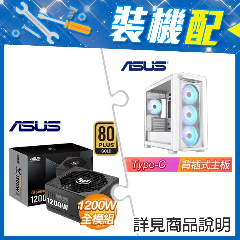 ☆裝機配★ 華碩【A23 PLUS】玻璃透側 M-ATX機殼 (支援背插式主板)《白》+華碩 TUF GAMING 1200G 金牌 全模組 ATX3.0(PCIe 5.0)