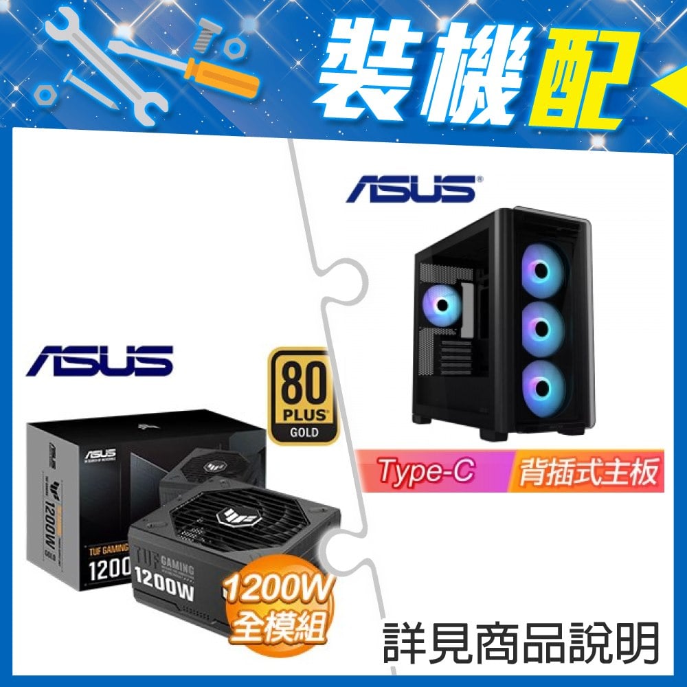 ☆裝機配★ 華碩【A23 PLUS】玻璃透側 M-ATX機殼 (支援背插式主板)《黑》+華碩 TUF GAMING 1200G 金牌 全模組 ATX3.0(PCIe 5.0)