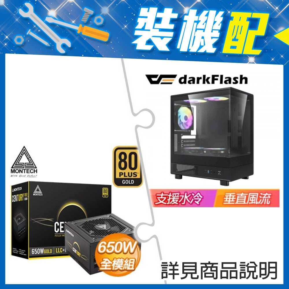 ☆裝機配★ darkFlash【MOTI mini 鏡之小島】全景玻璃 M-ATX機殼(含風扇*5)《黑》+MONTECH 創世紀 650W 金牌 全模組