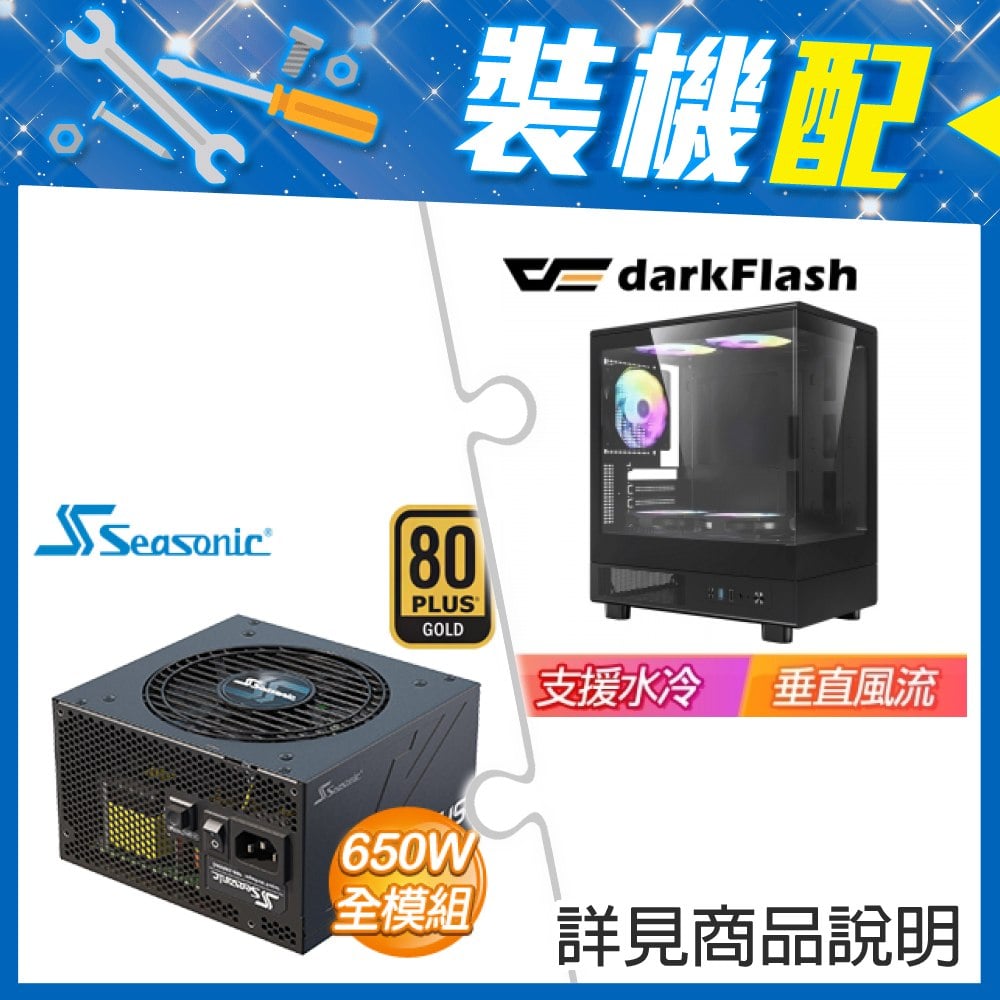 ☆裝機配★ darkFlash【MOTI mini 鏡之小島】全景玻璃 M-ATX機殼(含風扇*5)《黑》+海韻 Focus GX-650 650W 金牌 全模組