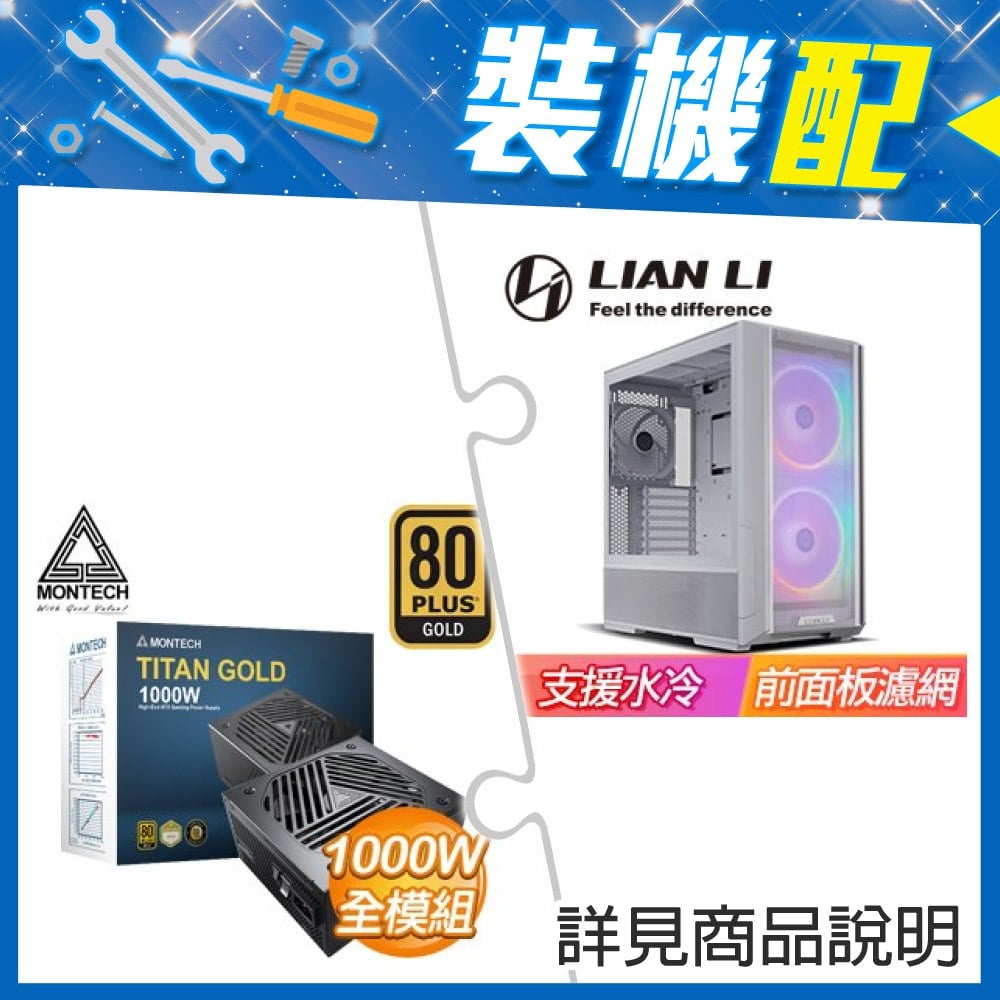 ☆裝機配★ 聯力【LANCOOL 216 ARGB】玻璃透側 E-ATX機殼(含前濾網)《白》+MONTECH TITAN GOLD 1000W 金牌 全模組 ATX3.0(PCIe 5.0)