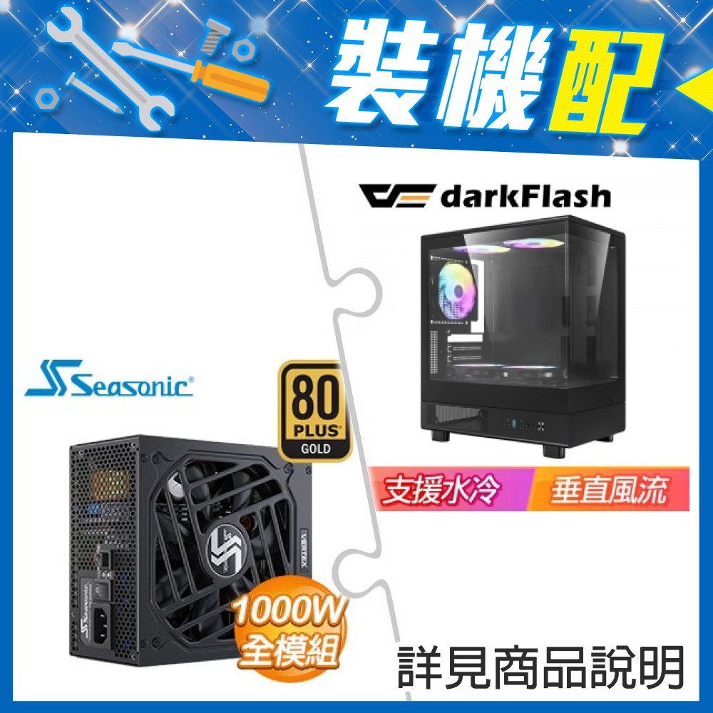 ☆裝機配★ darkFlash 大飛【DRX70 Mesh】ATX玻璃透側機殼(含ARGB風扇*4)《黑》+海韻 Vertex GX-1000 金牌 全模組 ATX3.0