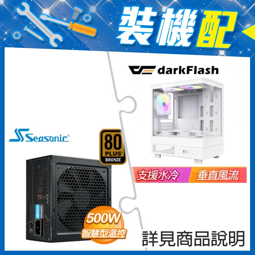 ☆裝機配★ darkFlash【MOTI mini 鏡之小島】全景玻璃 M-ATX機殼(含風扇*5)《白》+海韻 S12III-500 500W 銅牌