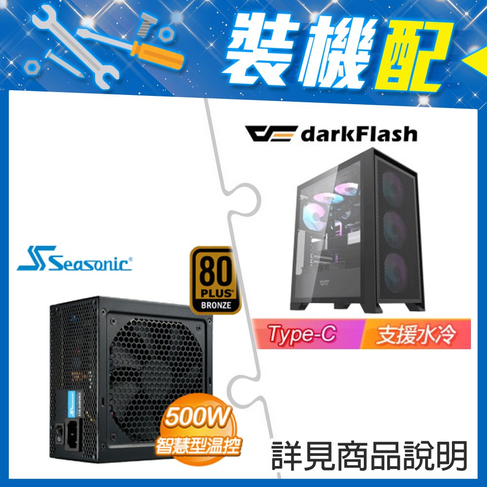 ☆裝機配★ darkFlash 大飛【DRX70 Mesh】ATX玻璃透側機殼(含ARGB風扇*4)《黑》+海韻 S12III-500 500W 銅牌