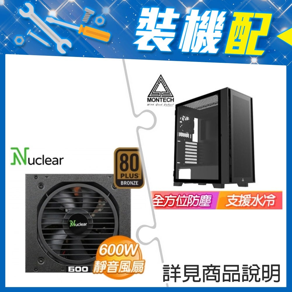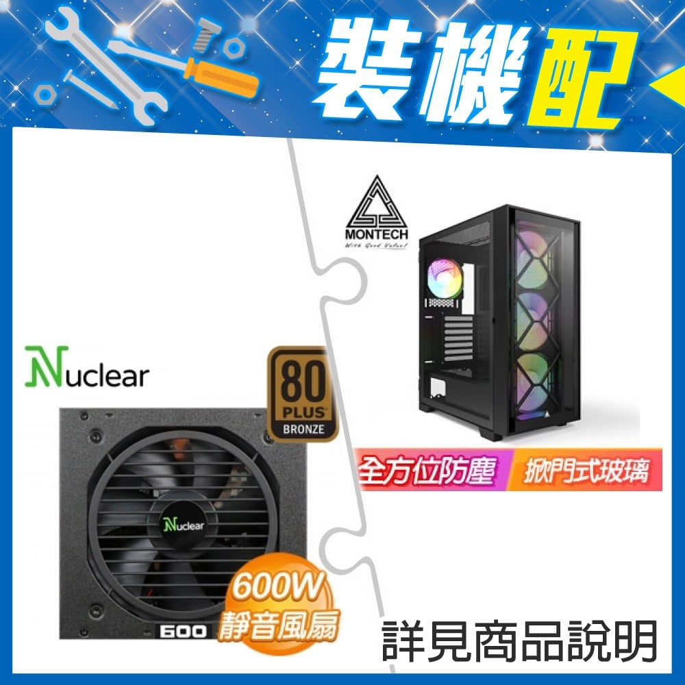 ☆裝機配★ MONTECH【AIR 1000 LITE】玻璃透側 ATX機殼《黑》+Nuclear 600W FR.V2 銅牌 半模組