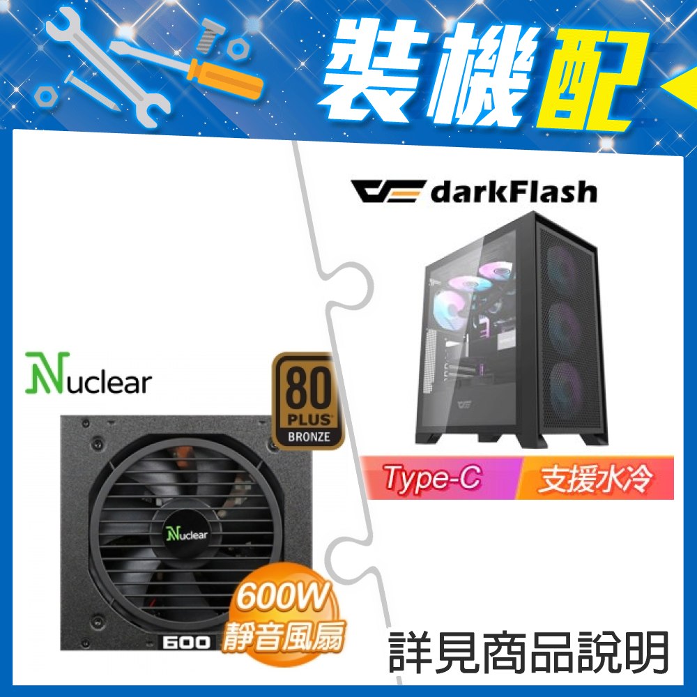 ☆裝機配★ darkFlash 大飛【DRX70 Mesh】ATX玻璃透側機殼(含ARGB風扇*4)《黑》+Nuclear 600W FR.V2 銅牌 半模組