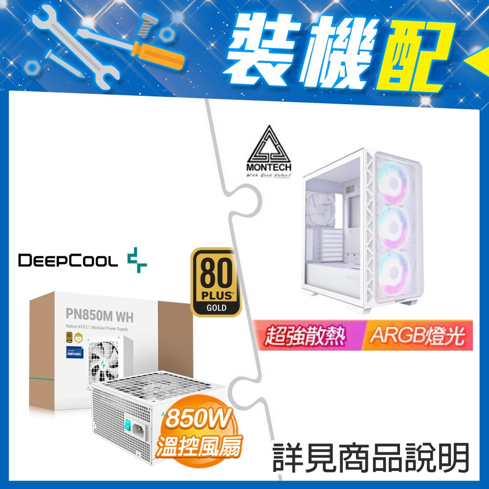 ☆裝機配★ MONTECH【AIR 903 BASE】玻璃透側 E-ATX機殼《白》+九州風神 PN850M 850W 金牌 全模組 ATX3.1(PCIe5.1)《白》