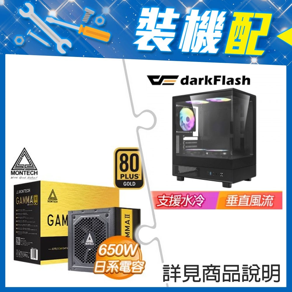 ☆裝機配★ darkFlash【MOTI mini 鏡之小島】全景玻璃 M-ATX機殼(含風扇*5)《黑》+MONTECH GAMMA II 650W 金牌
