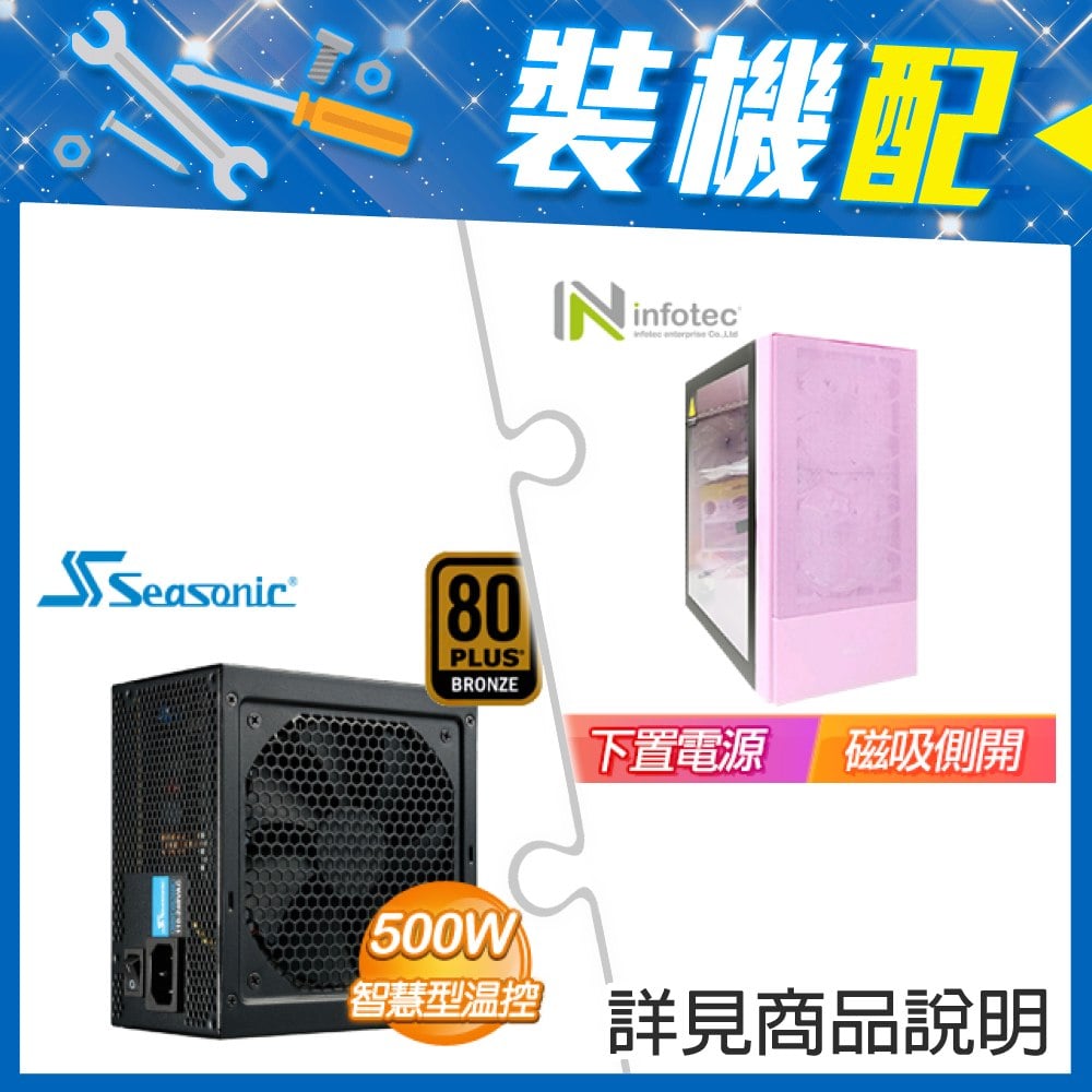 ☆裝機配★ 英富達【MR-T34】玻璃透側 M-ATX機殼《粉》+海韻 S12III-500 500W 銅牌