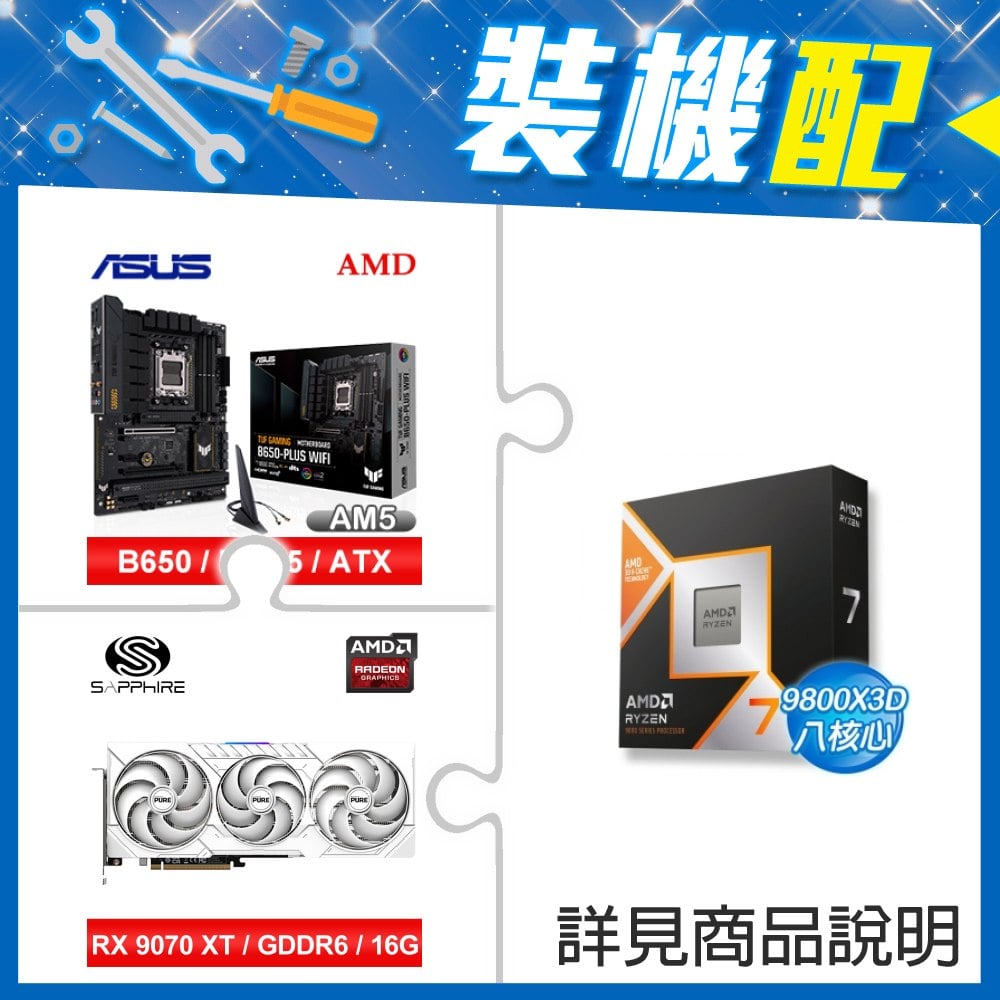 ☆裝機配★ AMD R7 9800X3D+華碩 TUF GAMING B650-PLUS WIFI ATX主機板+藍寶石 PURE 極地 RX 9070 XT GAMING OC 16GB 顯示卡