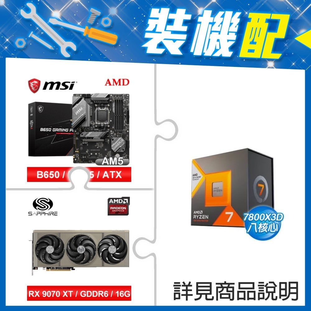 ☆裝機配★ AMD R7 7800X3D+微星 B650 GAMING PLUS WIFI D5 ATX主機板+藍寶石 NITRO+ 氮動 RX 9070 XT GAMING OC 16GB 顯示卡