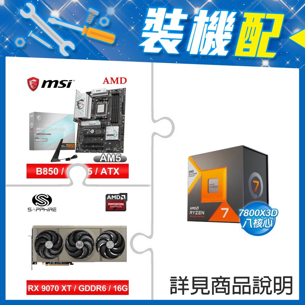 ☆裝機配★ AMD R7 7800X3D+微星 B850 GAMING PLUS WIFI ATX主機板+藍寶石 NITRO+ 氮動 RX 9070 XT GAMING OC 16GB 顯示卡