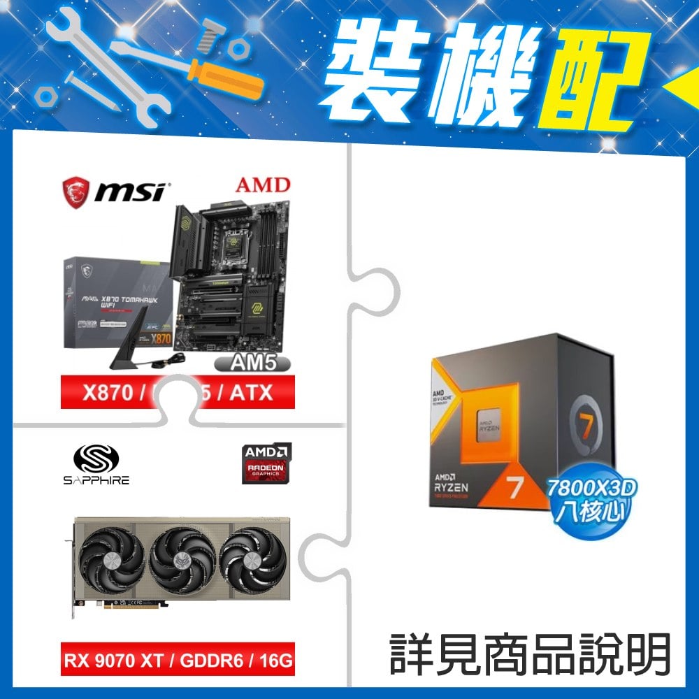 ☆裝機配★ AMD R7 7800X3D+微星 MAG X870 TOMAHAWK WIFI ATX主機板+藍寶石 NITRO+ 氮動 RX 9070 XT GAMING OC 16GB 顯示卡