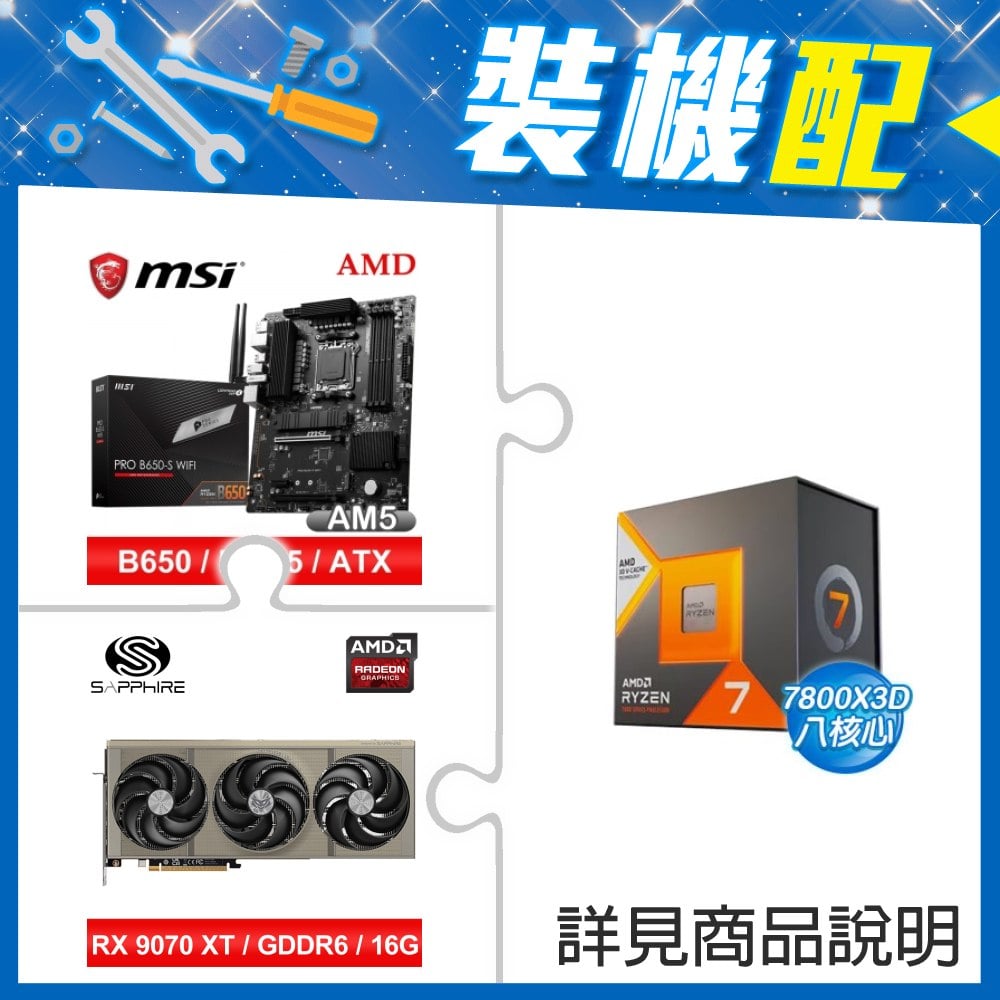 ☆裝機配★ AMD R7 7800X3D+微星 PRO B650-S WIFI ATX主機板+藍寶石 NITRO+ 氮動 RX 9070 XT GAMING OC 16GB 顯示卡