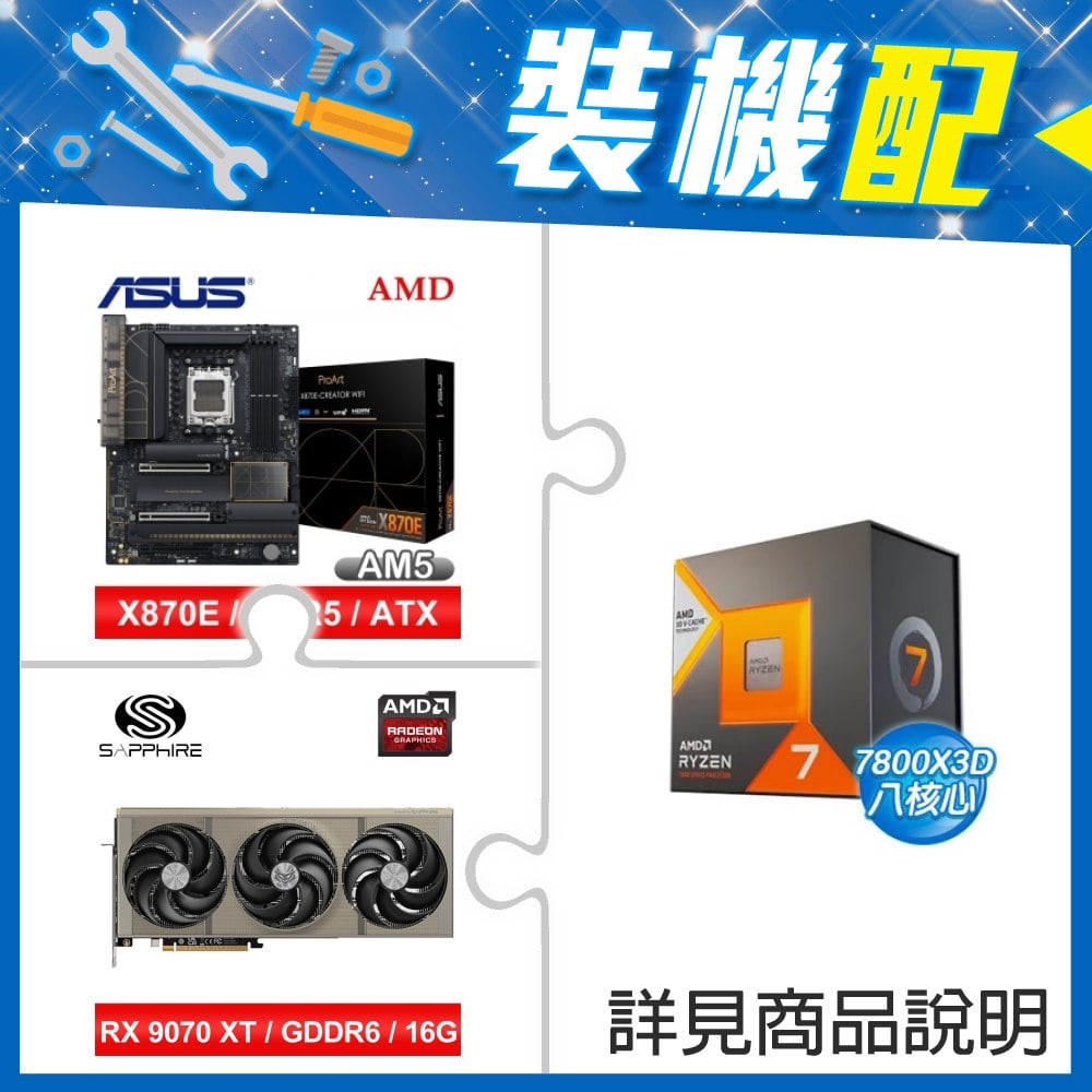 ☆裝機配★ AMD R7 7800X3D+華碩 PROART X870E-CREATOR WIFI ATX主機板+藍寶石 NITRO+ 氮動 RX 9070 XT GAMING OC 16GB 顯示卡