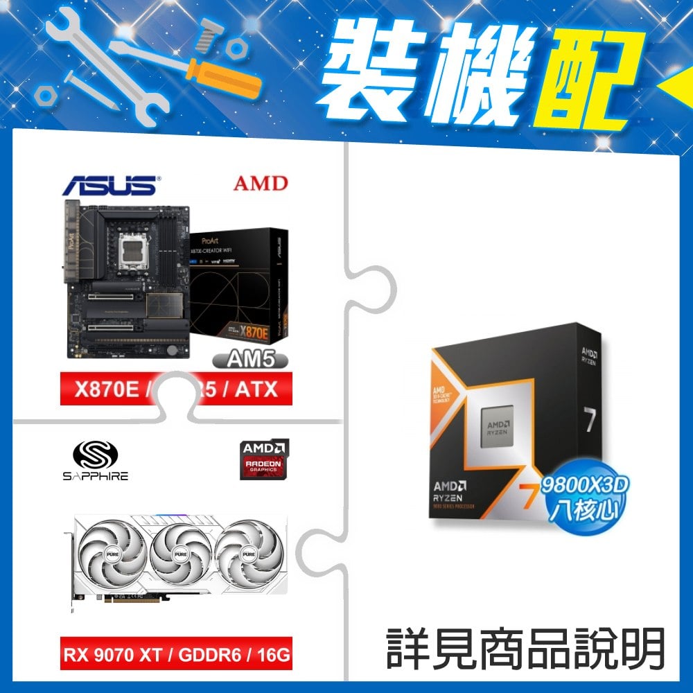 ☆裝機配★ AMD R7 7800X3D+華碩 PROART X870E-CREATOR WIFI ATX主機板+藍寶石 PURE 極地 RX 9070 XT GAMING OC 16GB 顯示卡