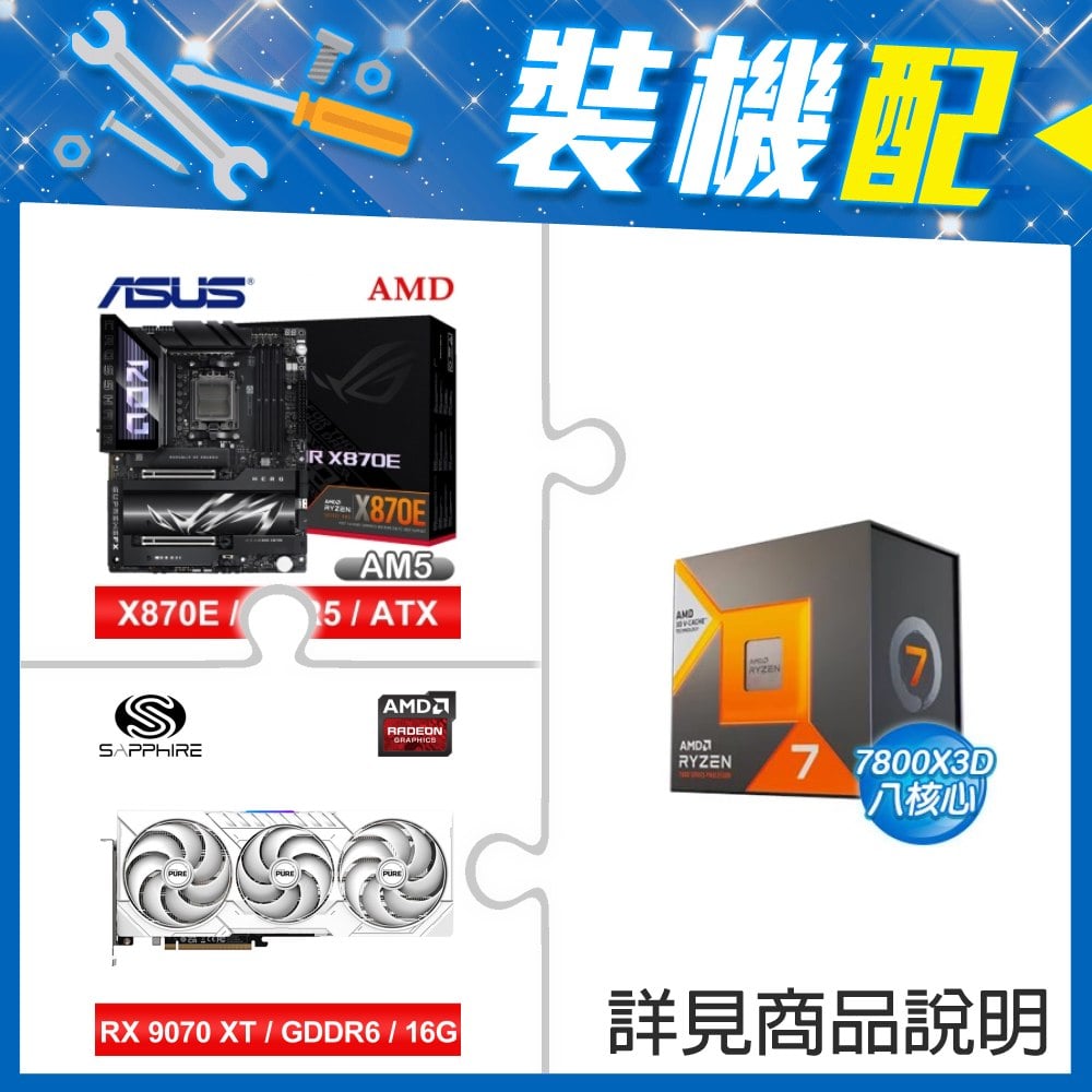 ☆裝機配★ AMD R7 7800X3D+華碩 ROG STRIX X870-A GAMING WIFI ATX主機板+藍寶石 PURE 極地 RX 9070 GRE GAMING OC 12GB 顯示卡