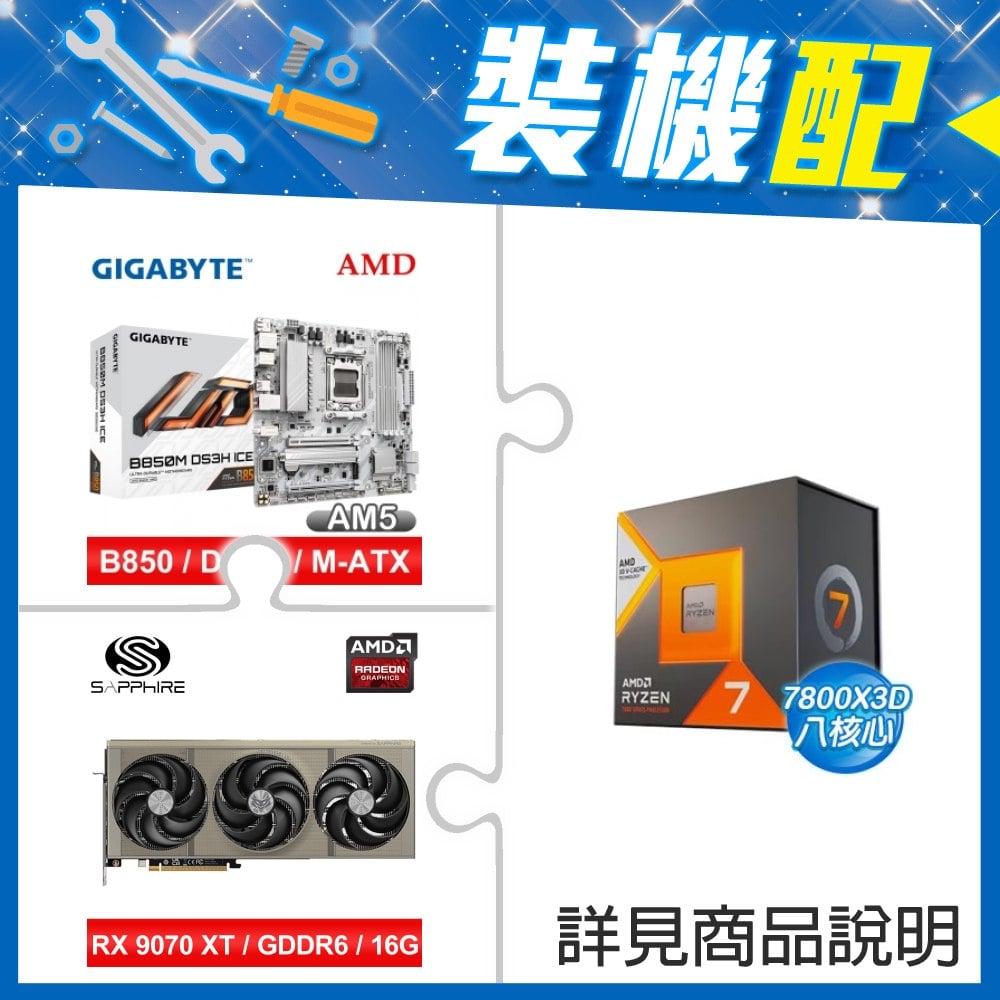 ☆裝機配★ AMD R7 7800X3D+技嘉 B850M DS3H ICE M-ATX主機板+藍寶石 NITRO+ 氮動 RX 9070 XT GAMING OC 16GB 顯示卡