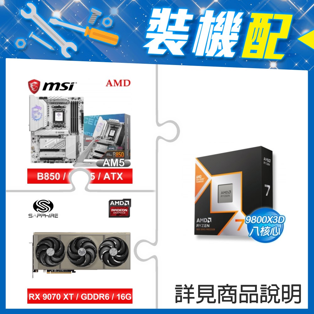 ☆裝機配★ AMD R7 9800X3D+微星 MPG B850 EDGE TI WIFI ATX主機板+藍寶石 NITRO+ 氮動 RX 9070 XT GAMING OC 16GB 顯示卡