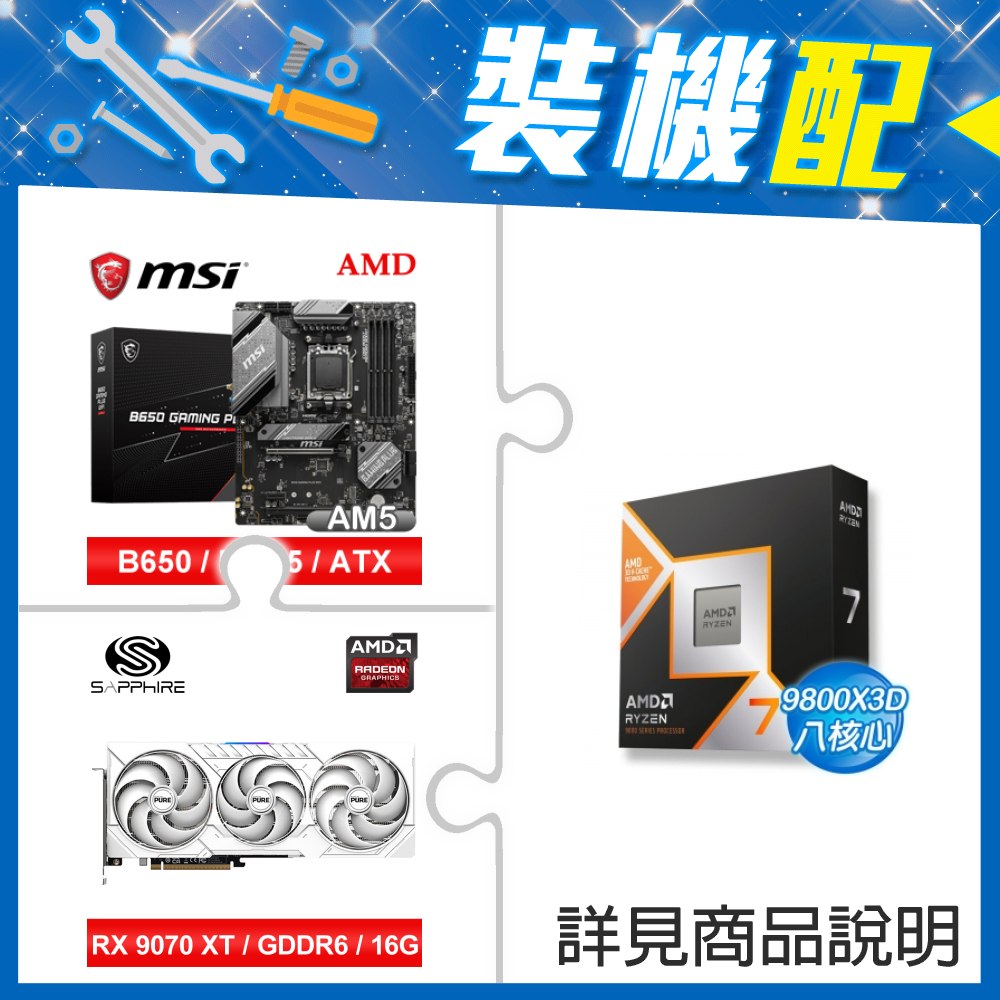 ☆裝機配★ AMD R7 9800X3D+微星 B650 GAMING PLUS WIFI D5 ATX主機板+藍寶石 PURE 極地 RX 9070 XT GAMING OC 16GB 顯示卡