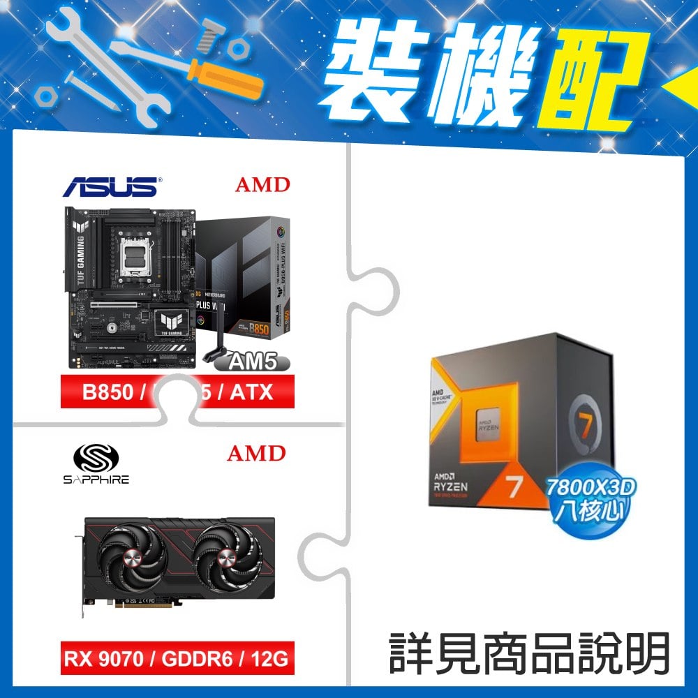 ☆裝機配★ AMD R7 7800X3D+華碩 TUF GAMING B850-PLUS WIFI ATX主機板+藍寶石 PULSE 脈動 RX 9070 GRE GAMING 12GB 顯示卡