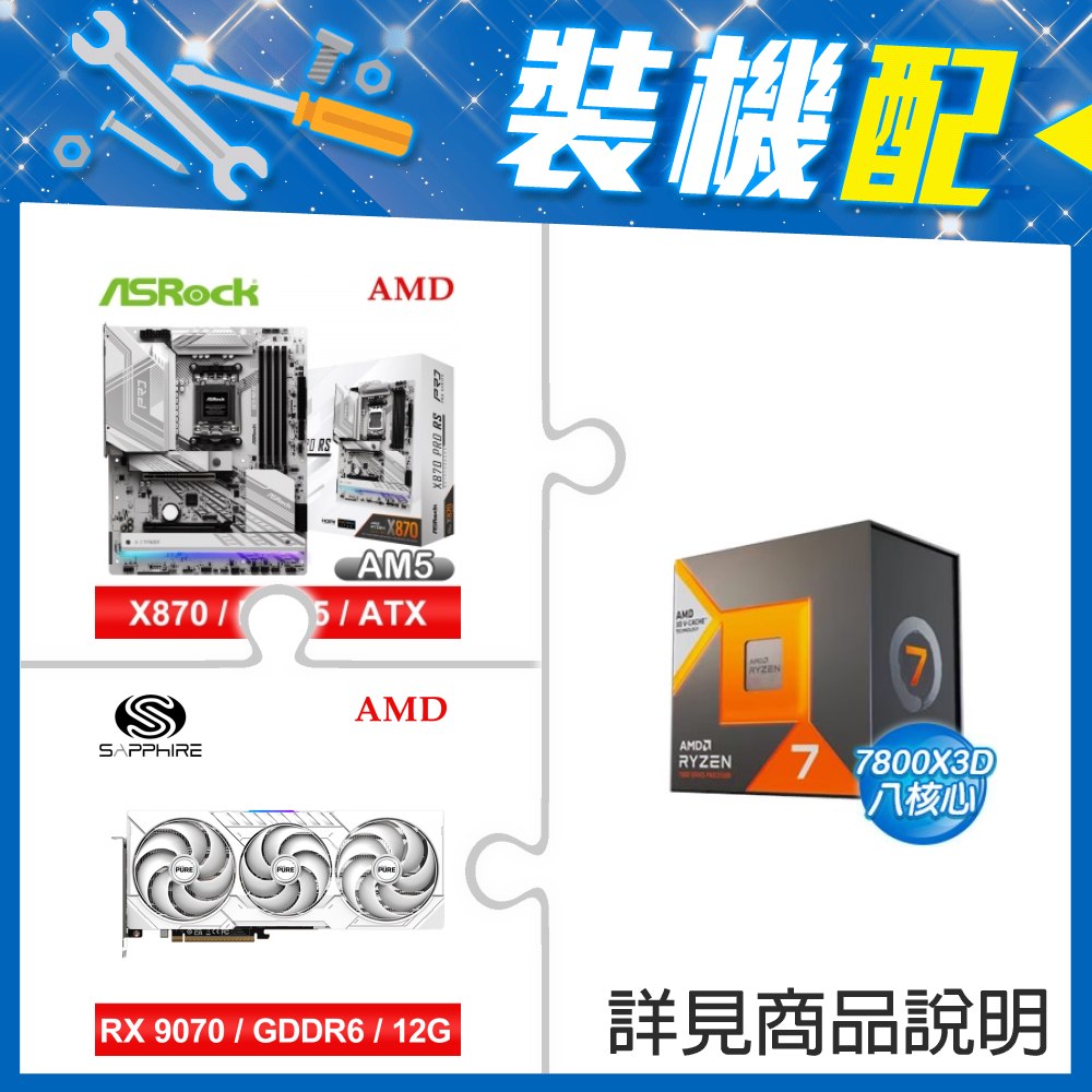 ☆裝機配★ AMD R7 7800X3D+華擎 X870 Pro RS ATX主機板+藍寶石 PURE 極地 RX 9070 GRE GAMING OC 12GB 顯示卡